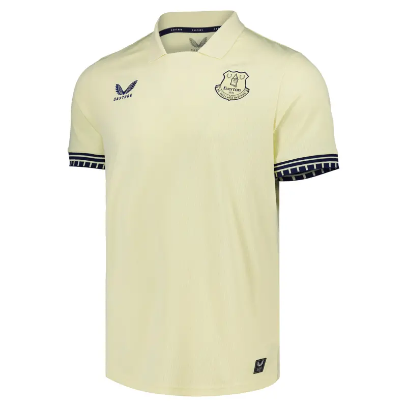 Carry your support for Everton far and wide with the Away Replica shirt for 2025-26. A comfortable regular fit, Aertek fabric technology and classic collar with insert combine retro sensibility with a comfortable everyday fit, while a sewn-on Everton crest and a back neck sign-off round out your team look.